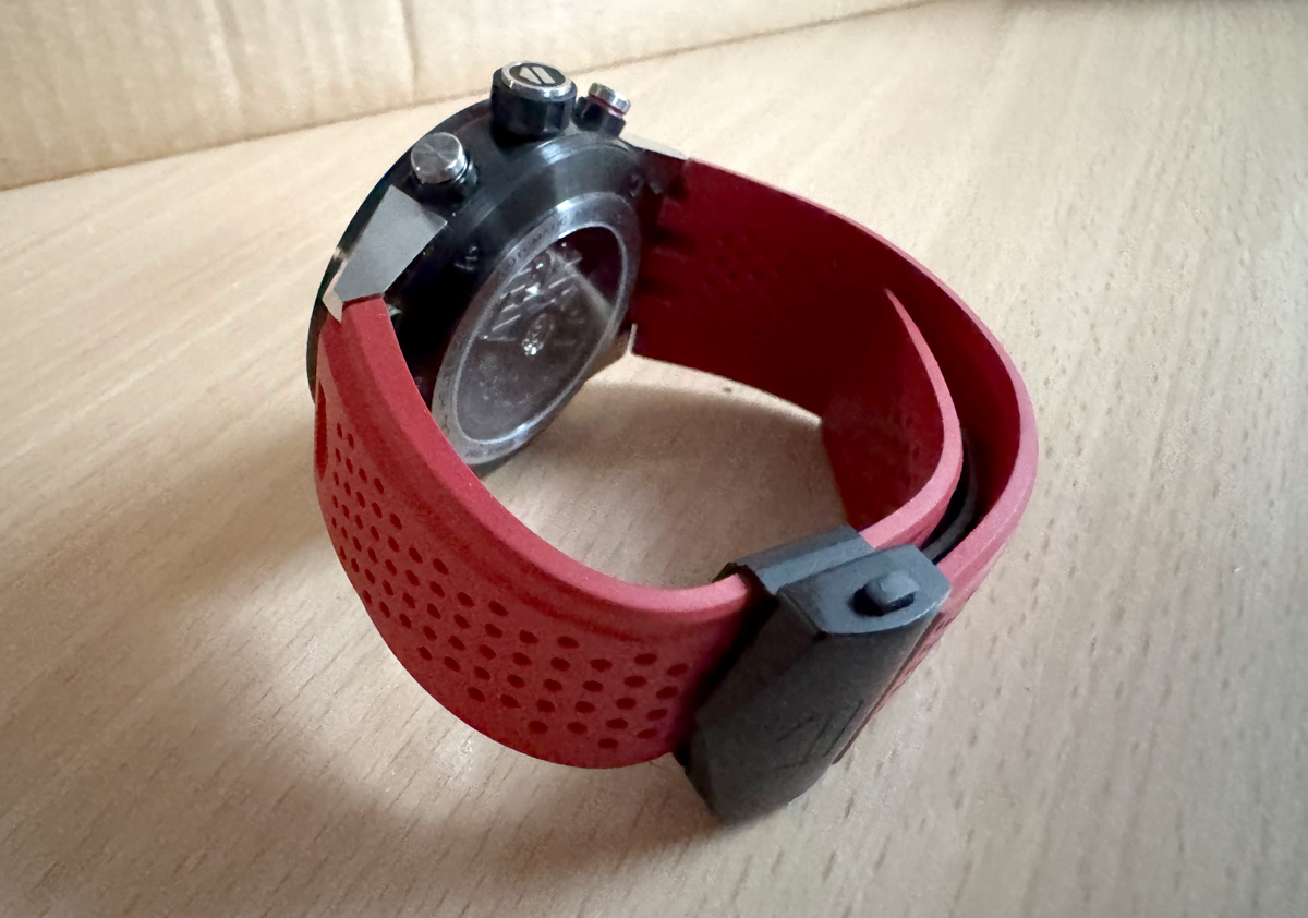 schwarz, analoge Anzeige, keine Ziffern, Chronograph