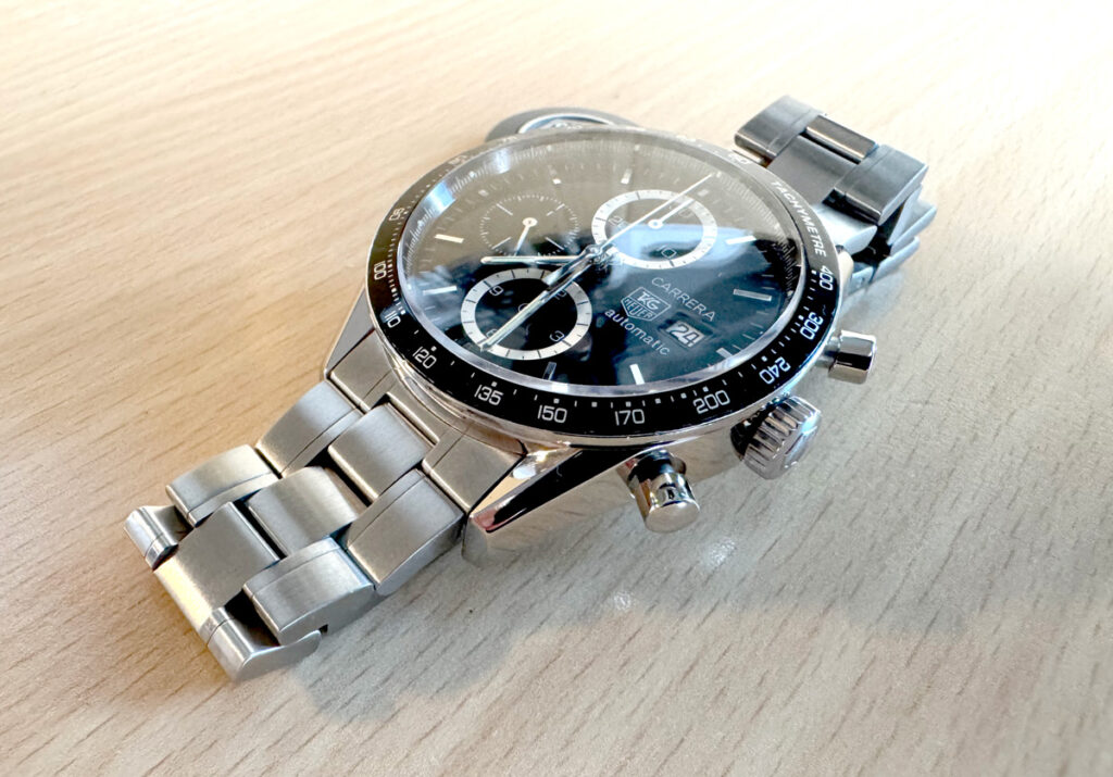 TAG HEUER Carrera Herren-Chronograph mit Edelstahlgehäuse, Automatikwerk, Glasboden und Saphirglas.