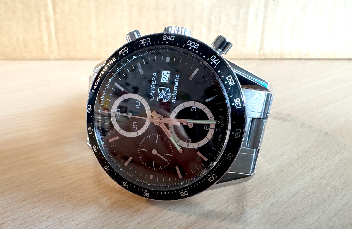 TAG HEUER Carrera Herren-Chronograph mit Edelstahlgehäuse, Automatikwerk, Glasboden und Saphirglas.
