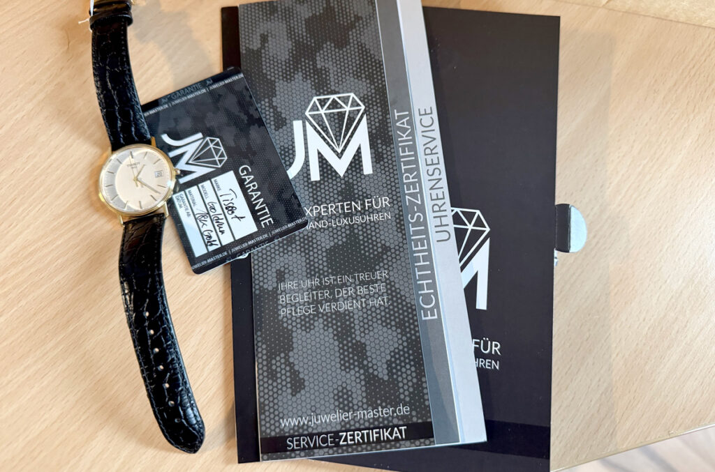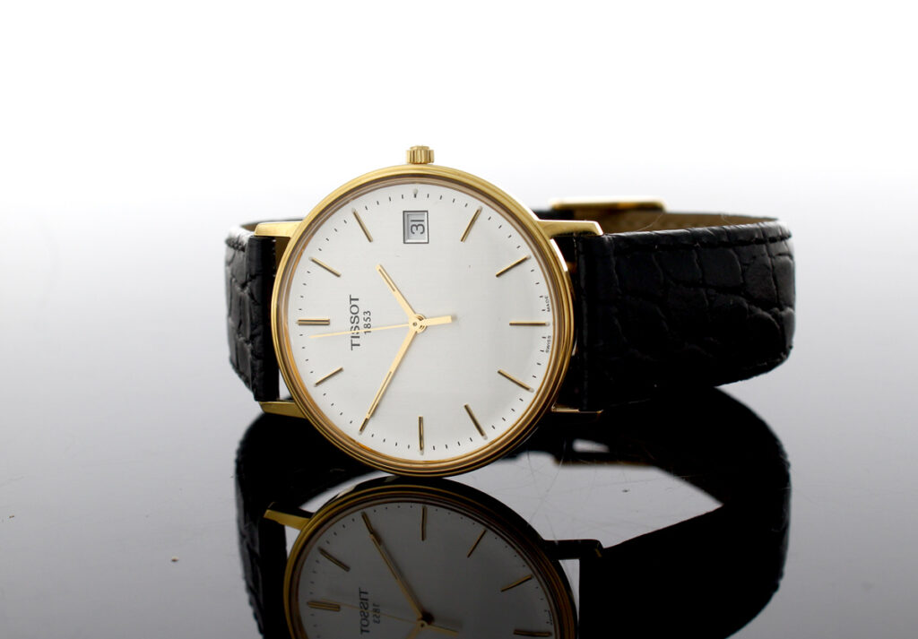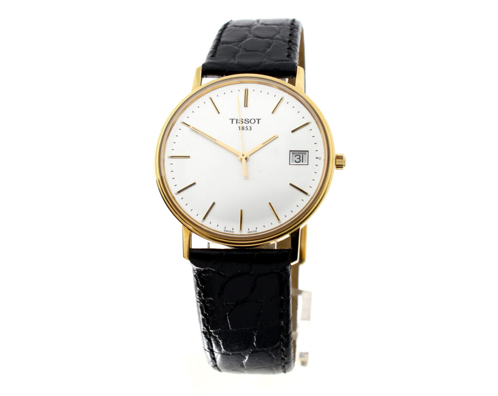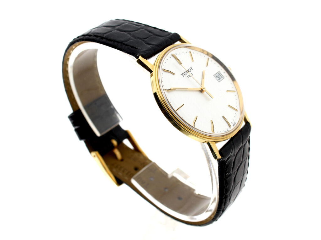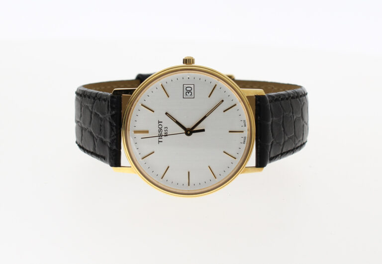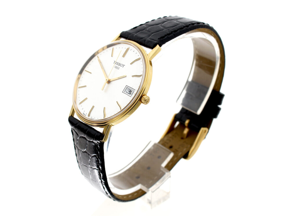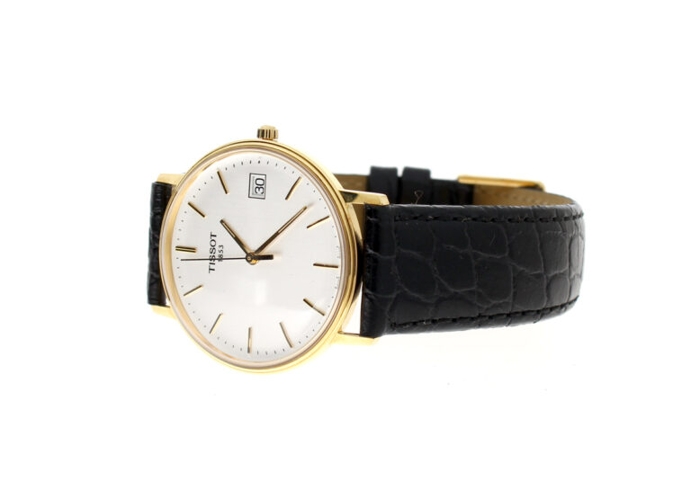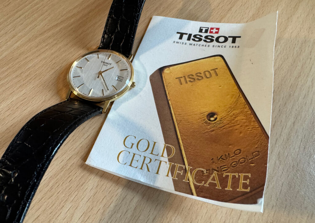 TISSOT Goldrun Armbanduhr mit 18-Karat-Goldgehäuse, ETA-Automatikwerk, Lederband mit Original-Papiere.