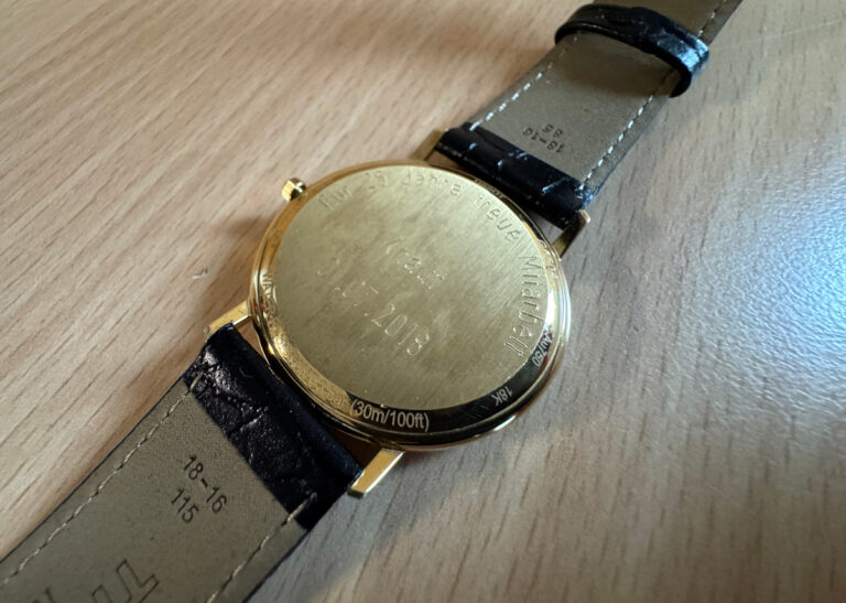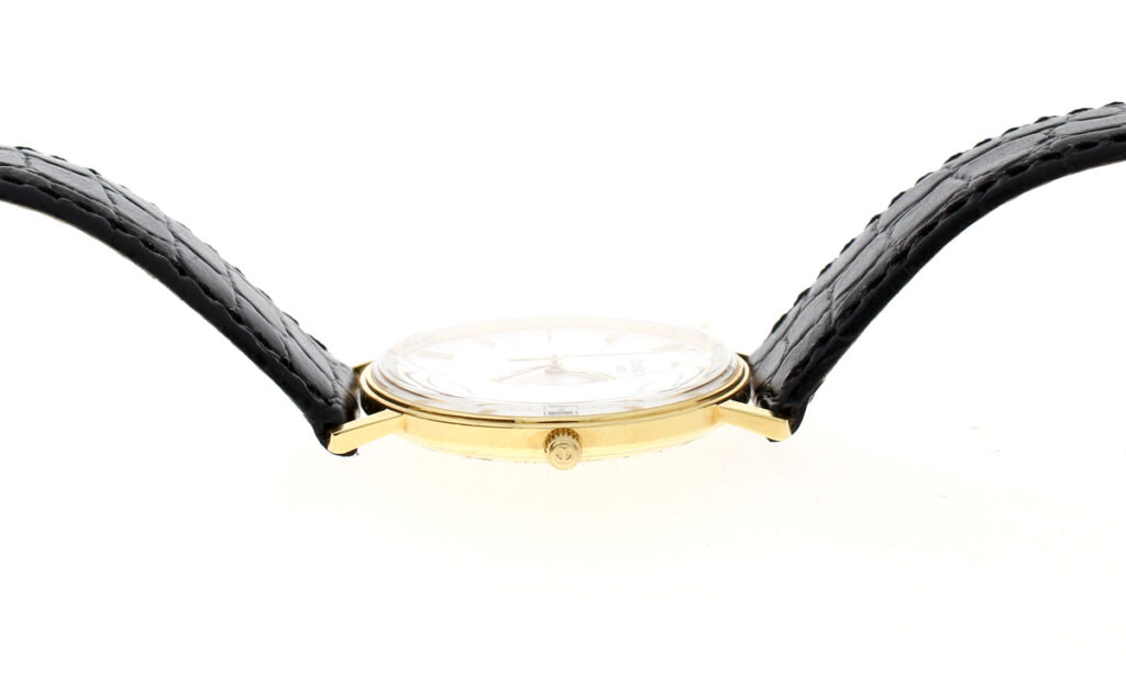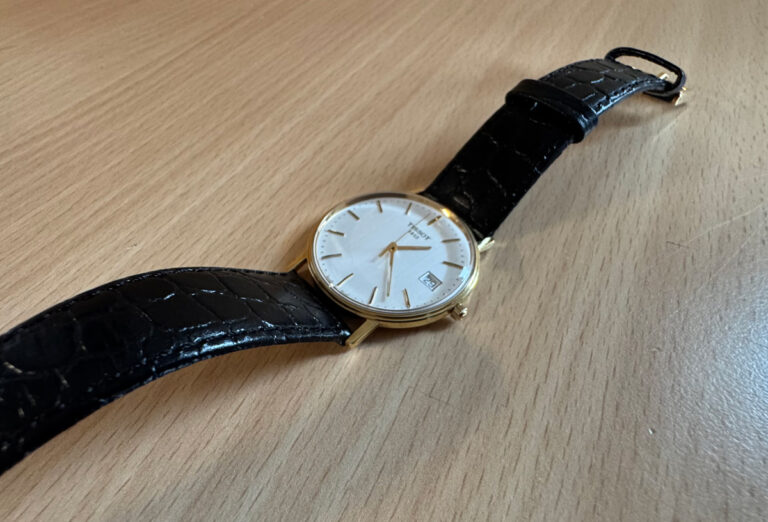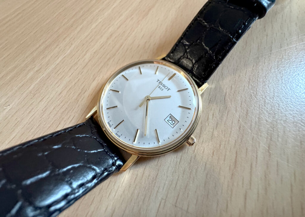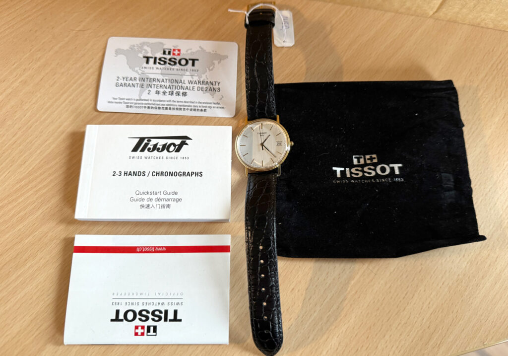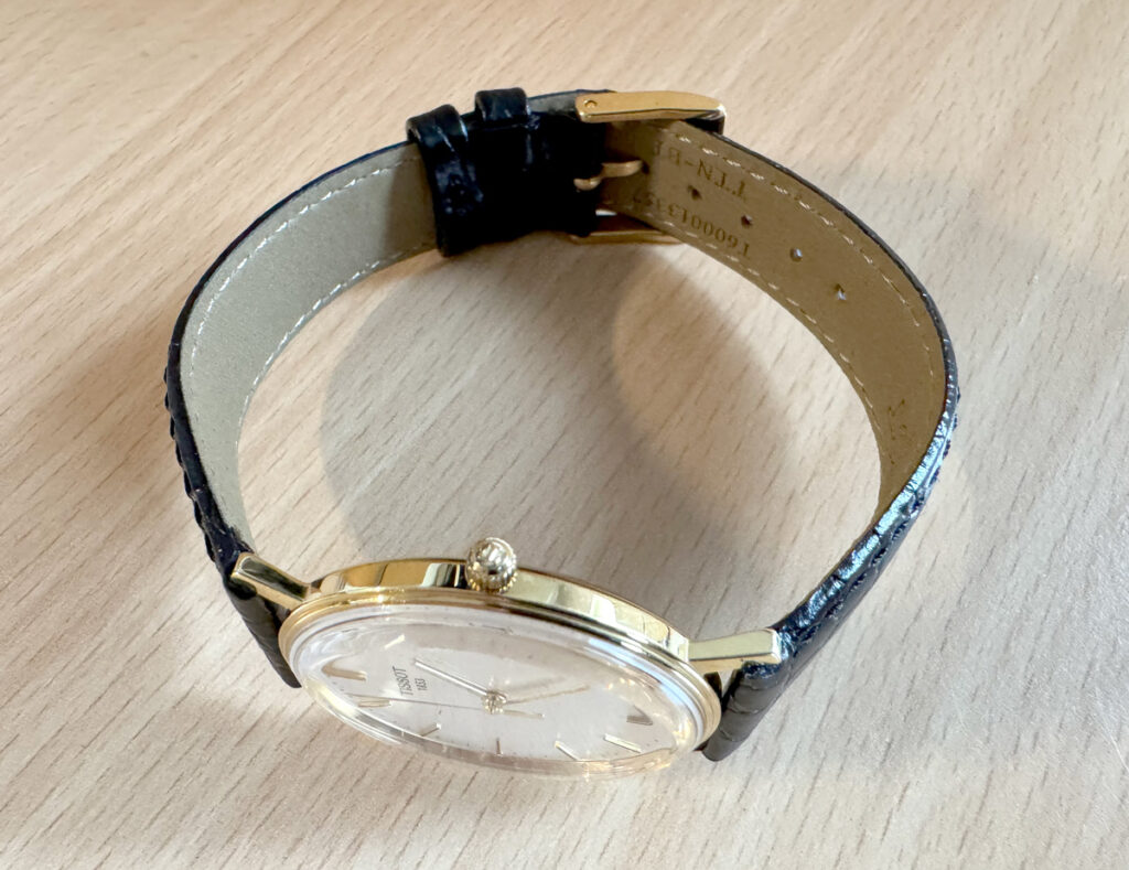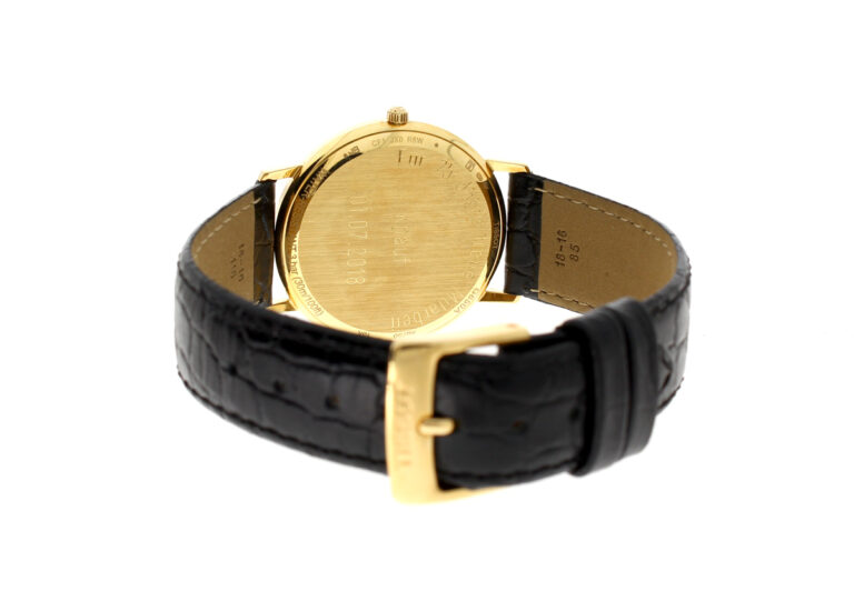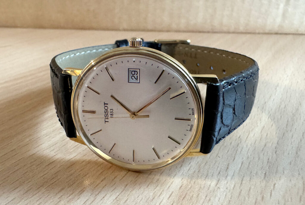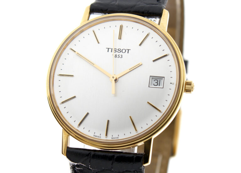 TISSOT Goldrun Armbanduhr mit 18-Karat-Goldgehäuse, ETA-Automatikwerk, Lederband mit Original-Papiere.