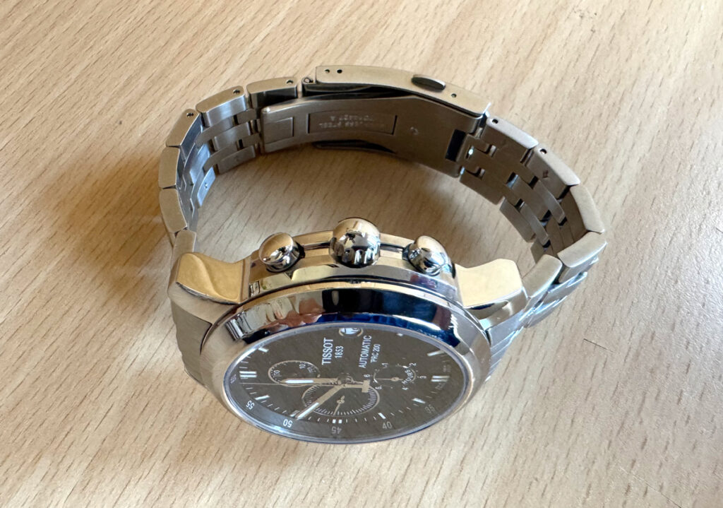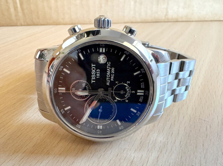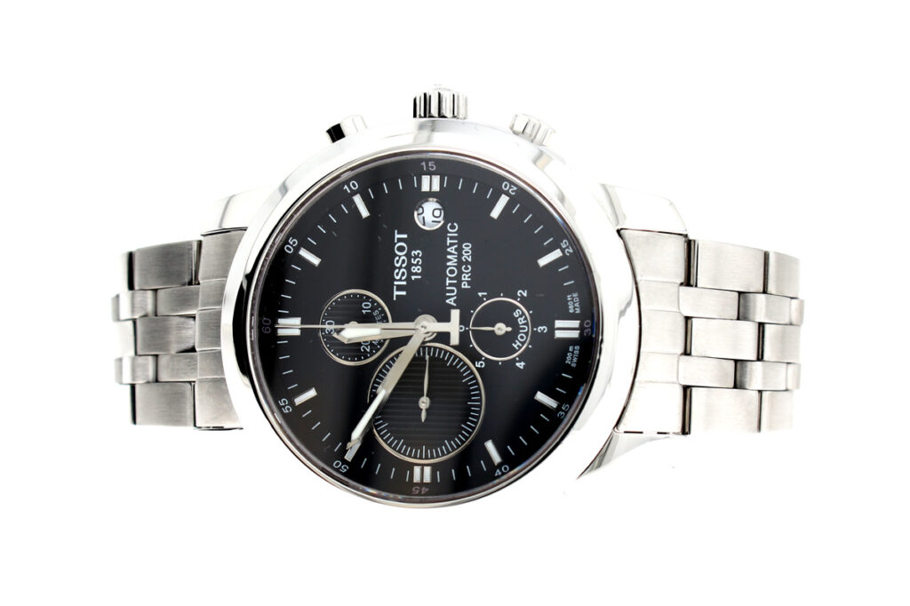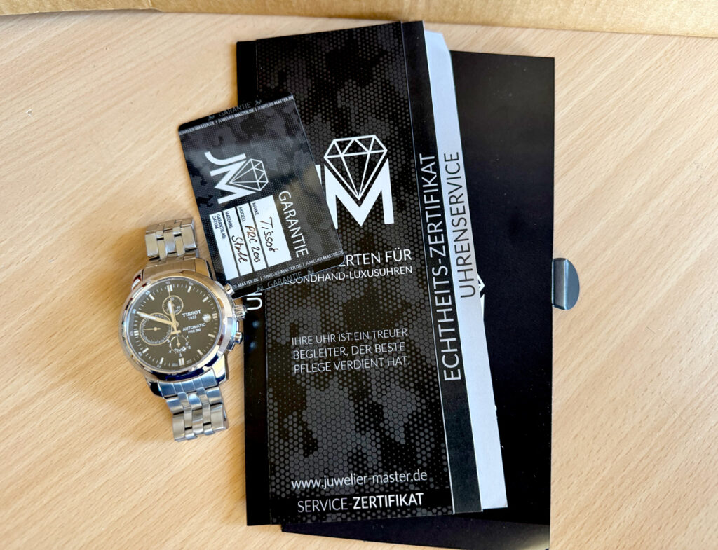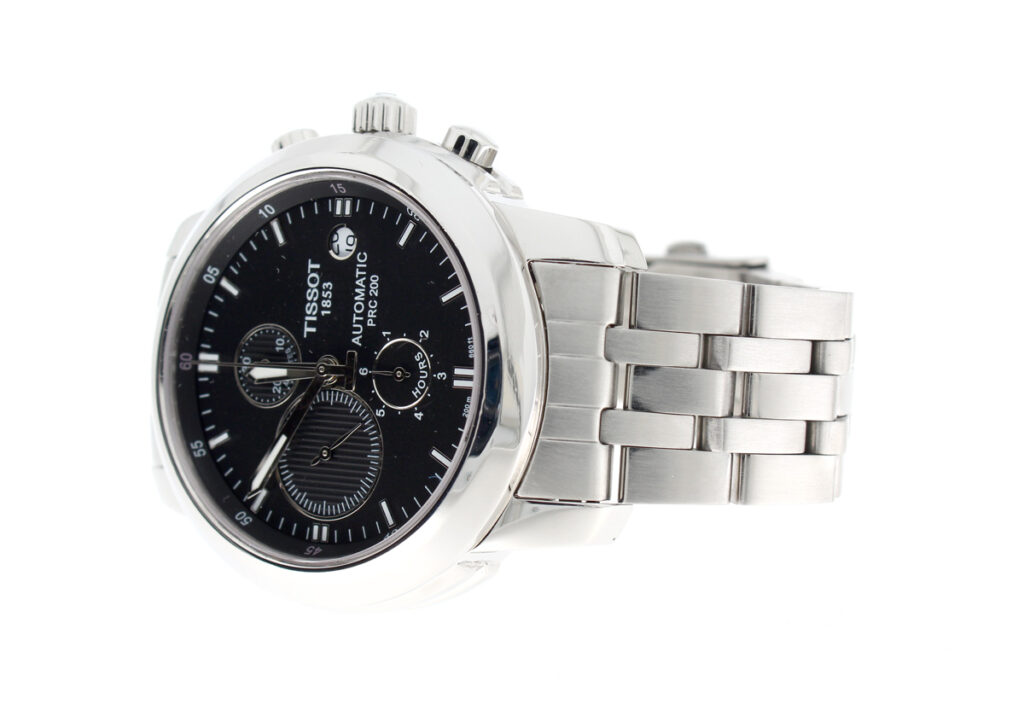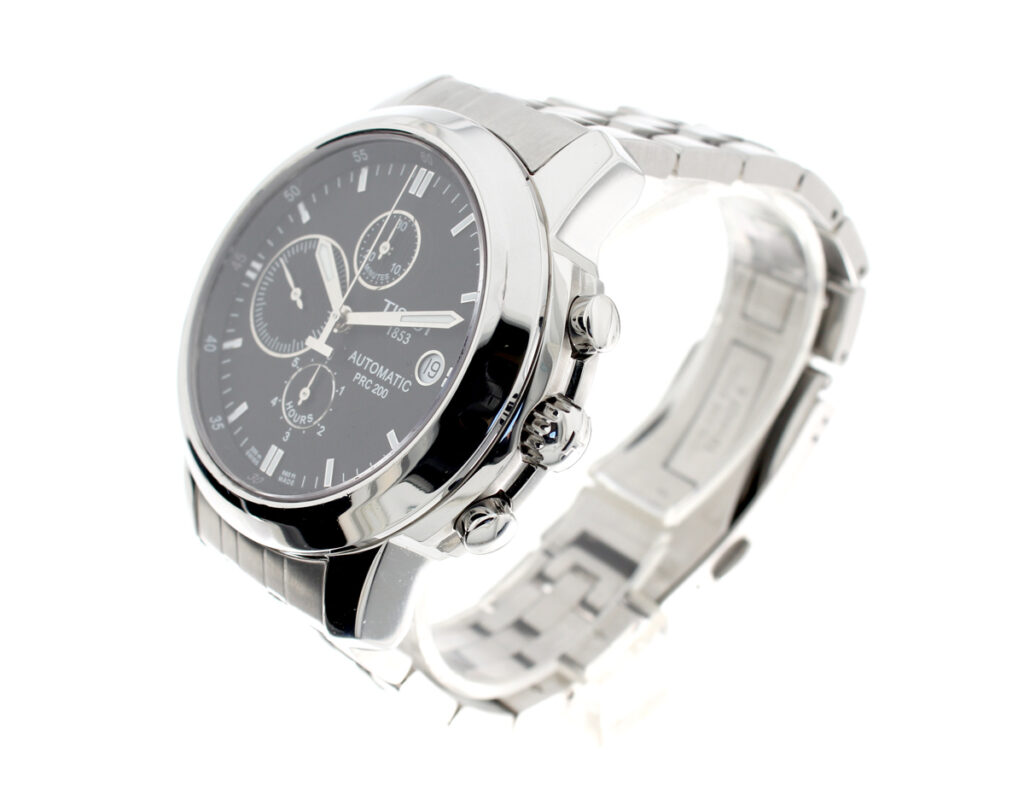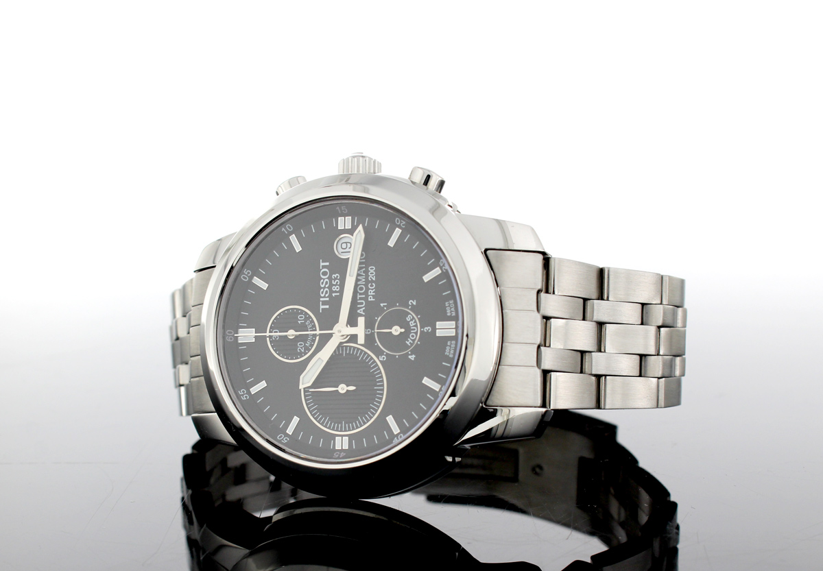 TISSOT PRC 200 Herrenuhr mit Edelstahlgehäuse, Automatikwerk, Glasboden, Faltschließe im Full-Set.