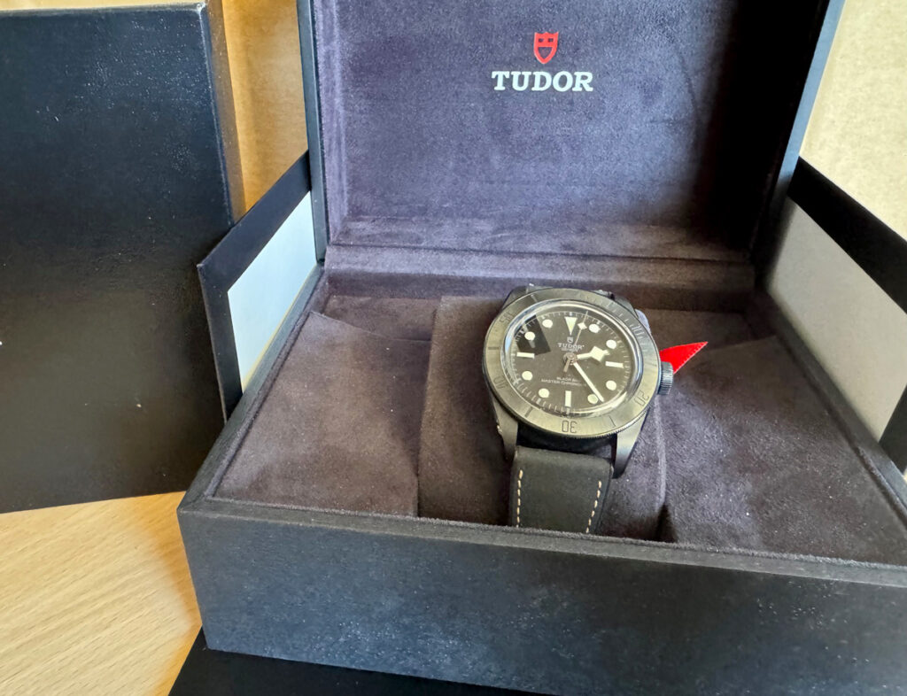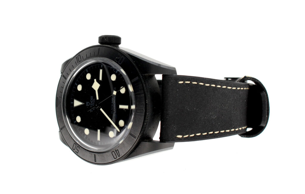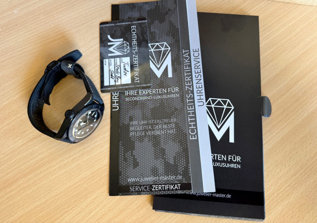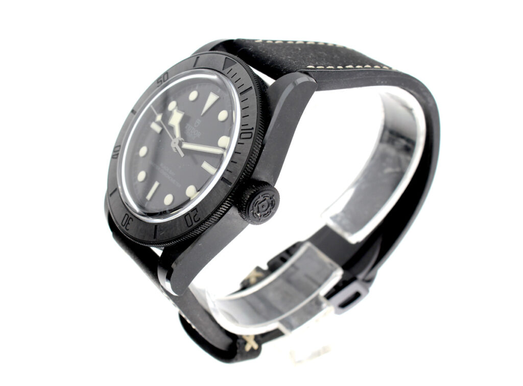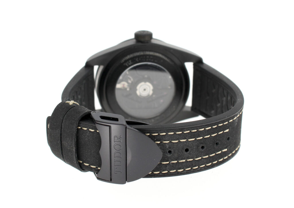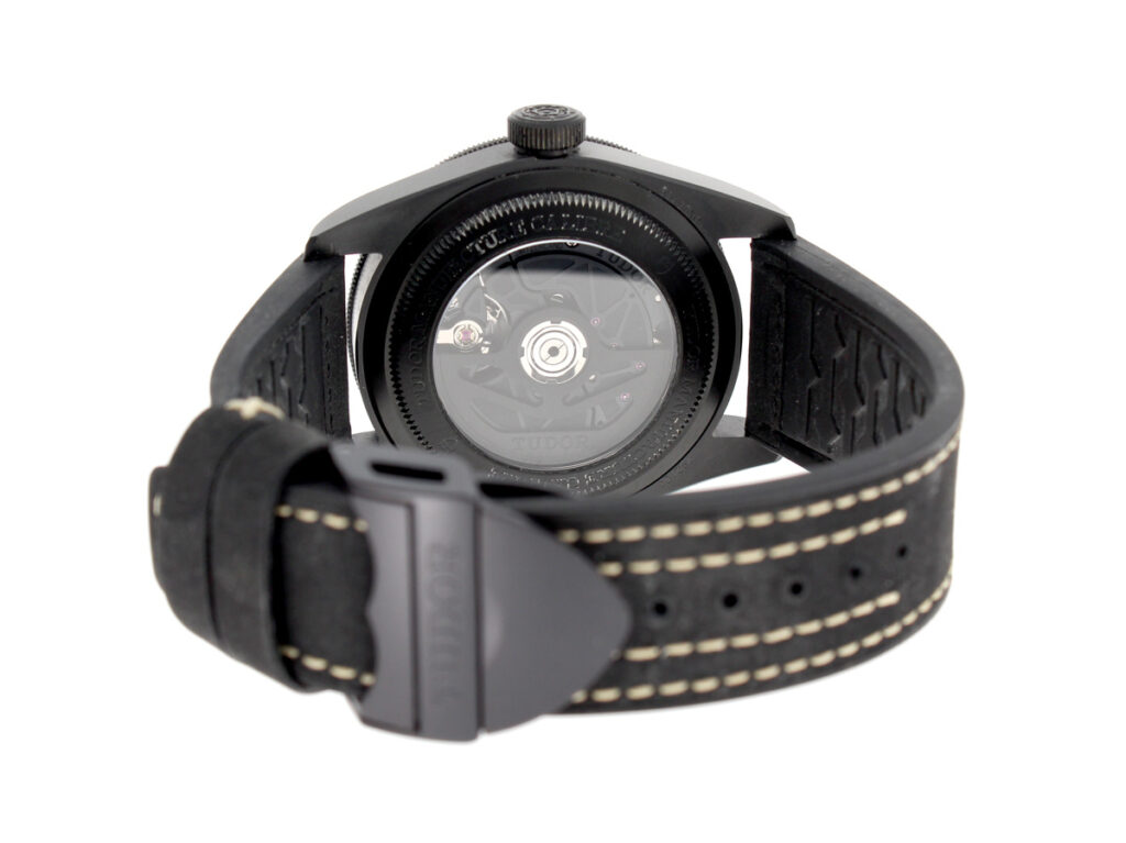 TUDOR Black Bay Herren-Armbanduhr mit schwarzen Stahlgehäuse, Automatikwerk, Kautschukband im Full-Set.