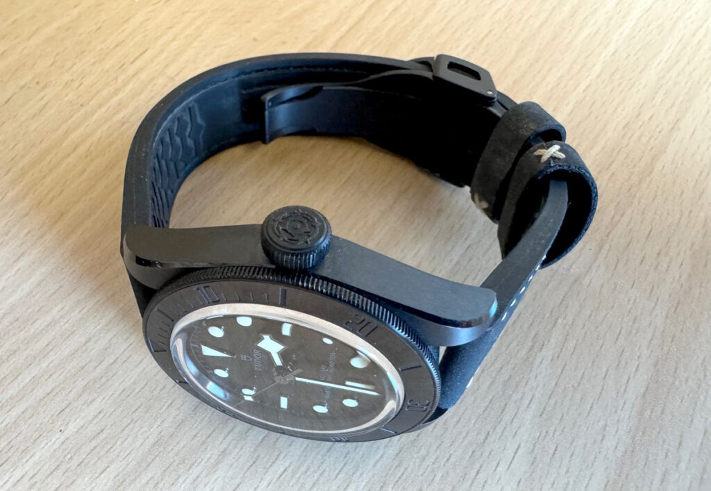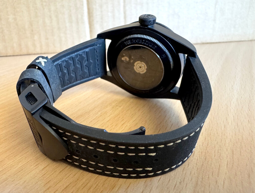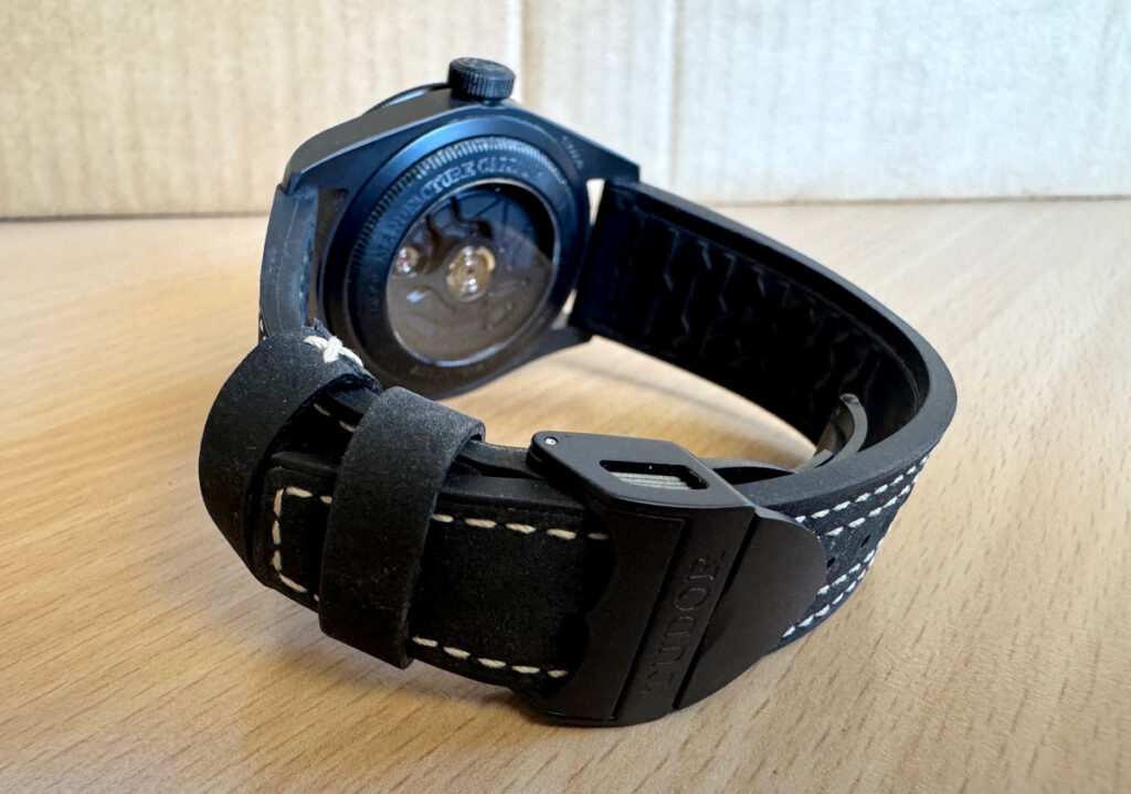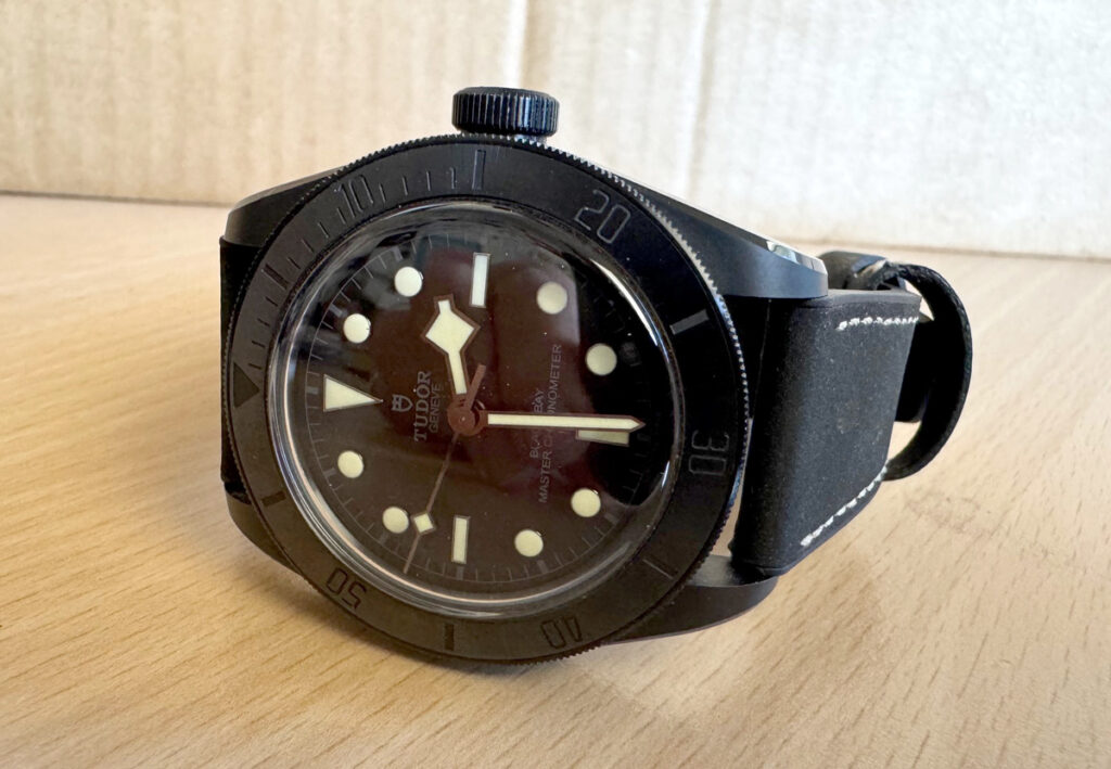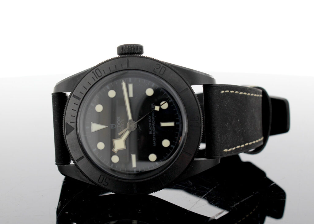TUDOR Black Bay Herren-Armbanduhr mit schwarzen Stahlgehäuse, Automatikwerk, Kautschukband im Full-Set.