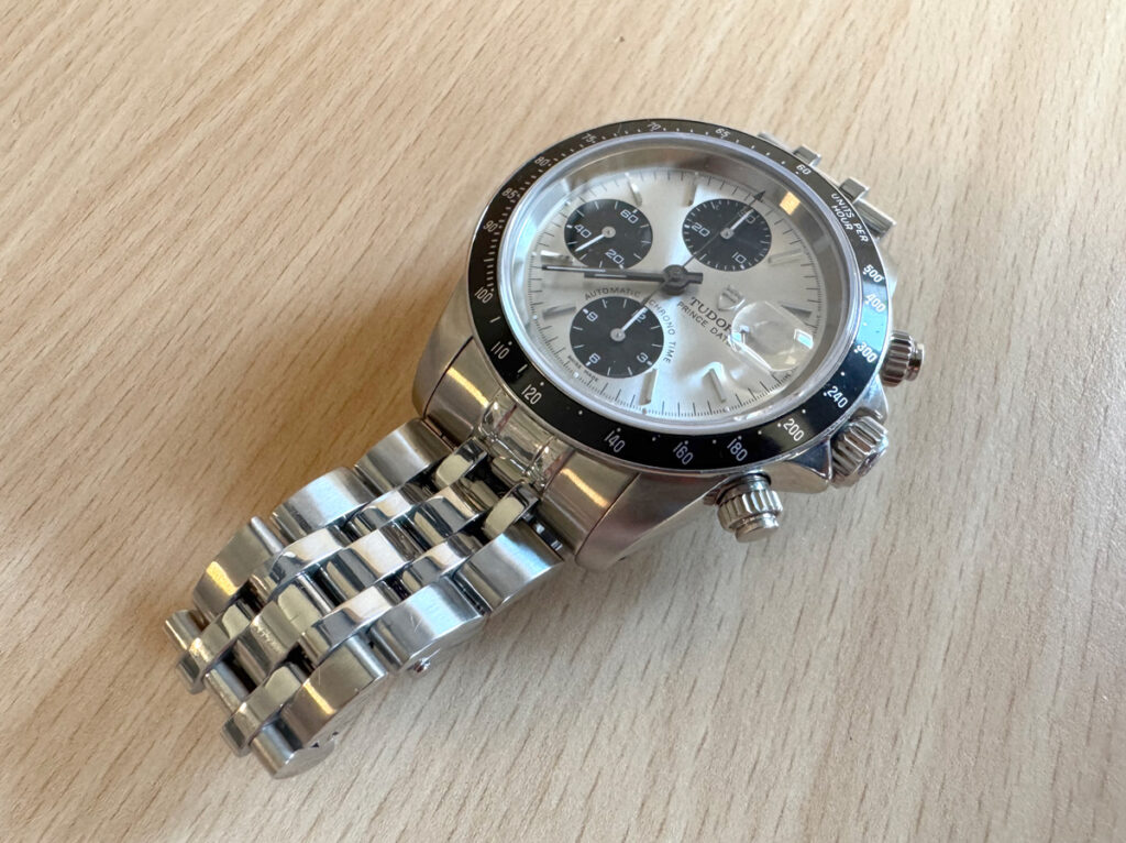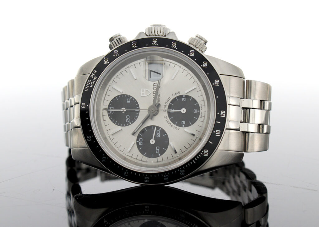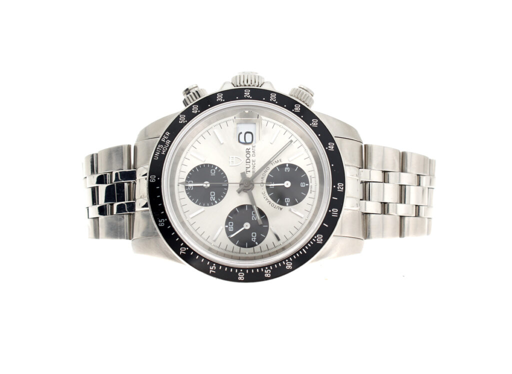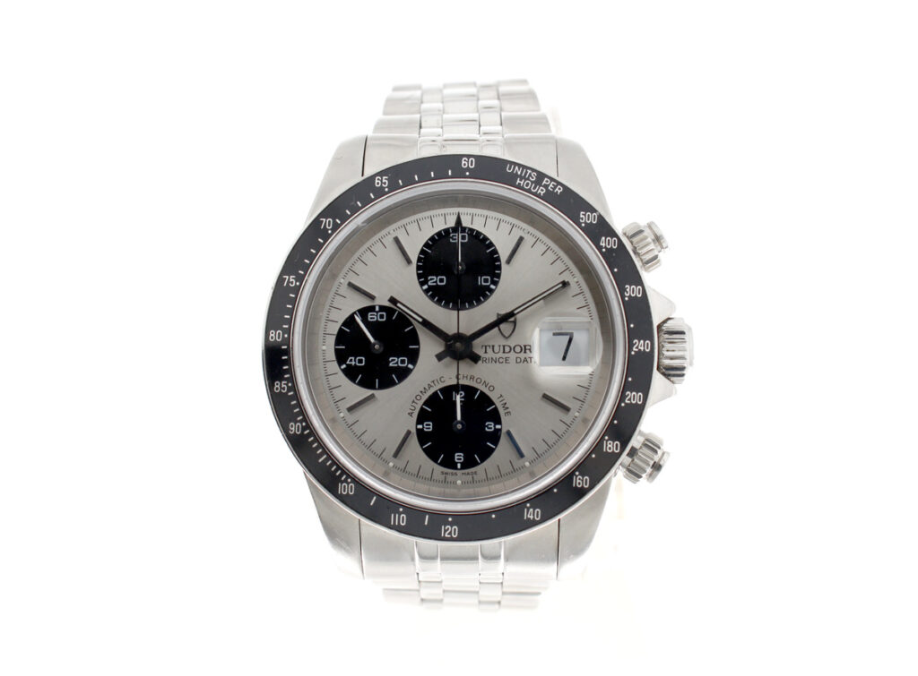 TUDOR Prince Date Herrenuhr mit Edelstahlgehäuse, Automatikwerk, Stahlband und verschraubter Krone.