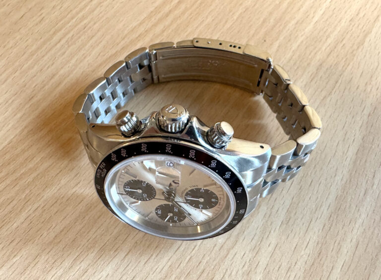 silber, analoge Anzeige, keine Ziffern, Chronograph