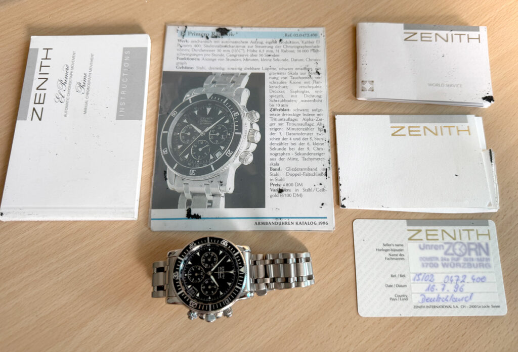 ZENITH Rainbow, El Primero Herren-Armbanduhr mit Edelstahlgehäuse, Automatikwerk, Drehlünette im Full-Set.