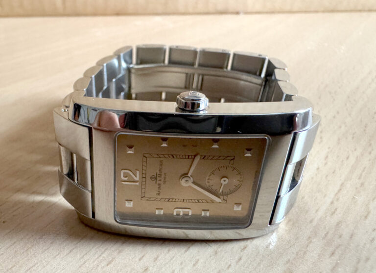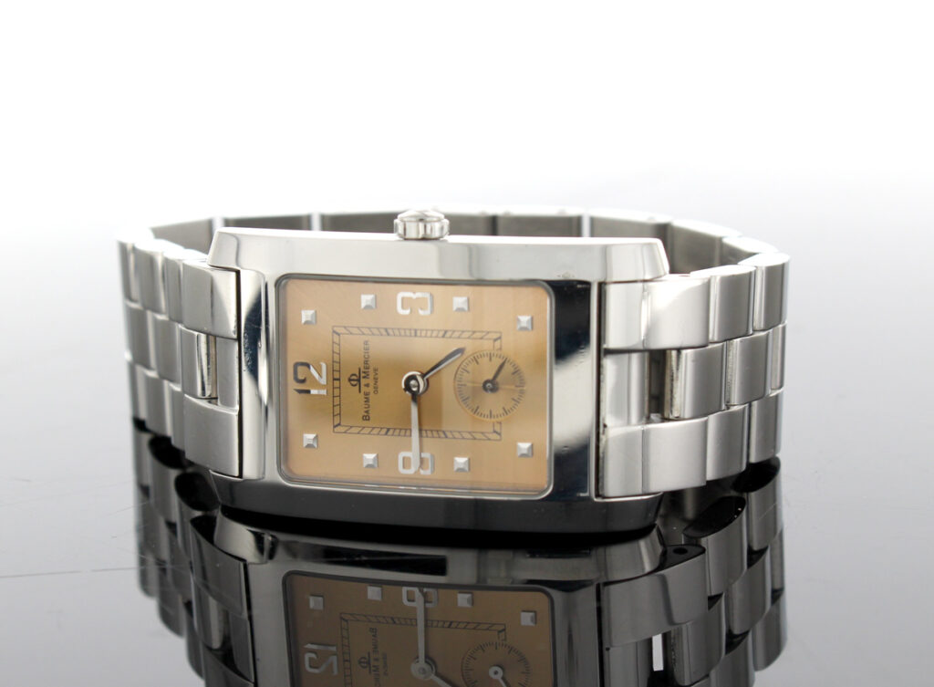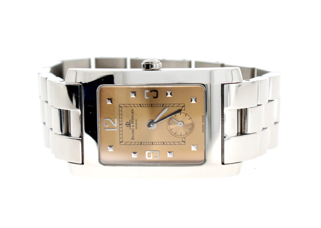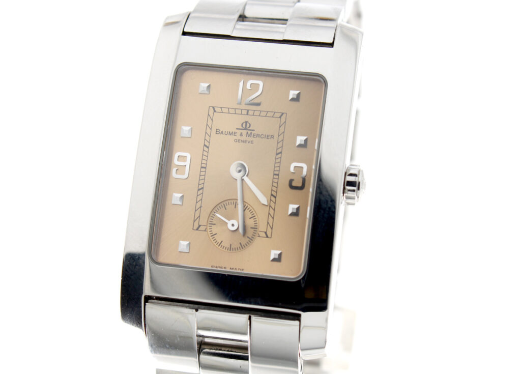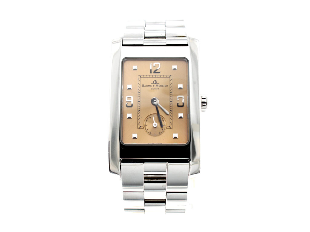 BAUME MERCIER Hampton Edelstahl Armbanduhr mit ETA-Quartzwerk, Edelstahl-Armband mit Doppelfaltschließe.