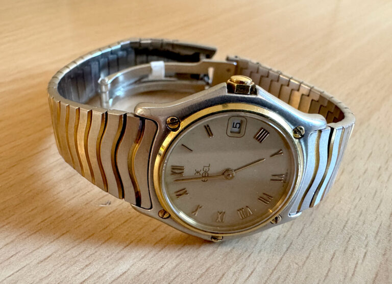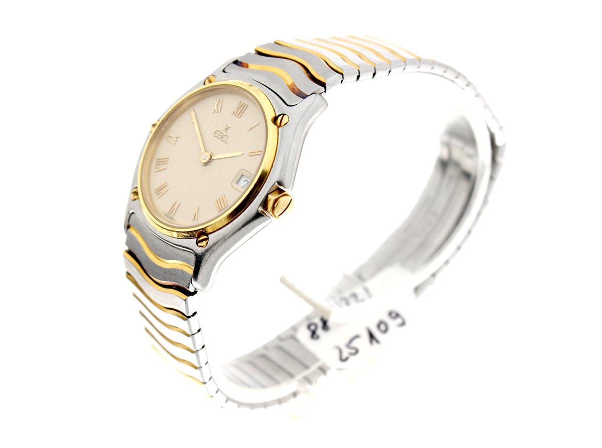 EBEL Classic Wave Armbanduhr mit Stahl-/ Goldgehäuse (Bicolor), Quartzwerk und Faltschließe.