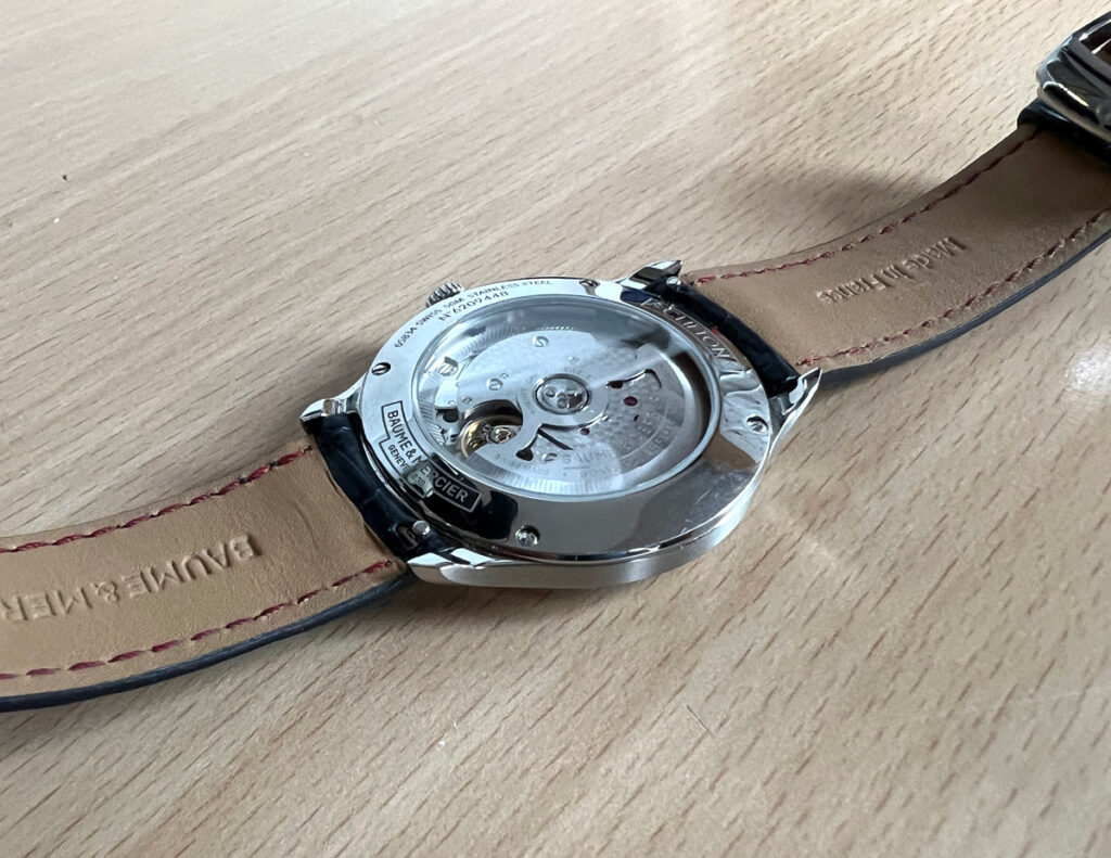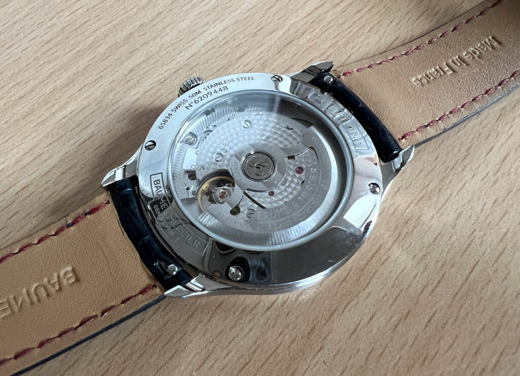 BAUME & MERCIER Herren-Lederbanduhr mit Automatikwerk und Glasboden